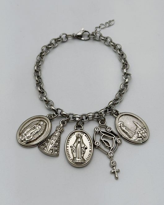Um acessório de fé que homenageia cinco aparições marianas: Nossa Senhora das Graças, Guadalupe, Aparecida, das Lágrimas e de Fátima. Cada pingente carrega um significado especial, representando proteção, amor e espiritualidade. Ideal para quem deseja expressar sua devoção e manter a presença de Maria sempre por perto.