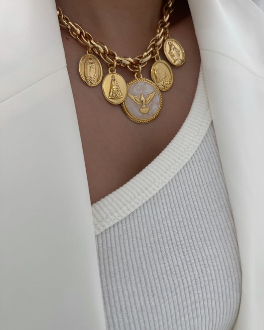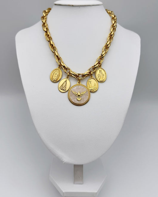 Colar Corrente Baiana Dourada 5 Pingentes Católicos CO2269