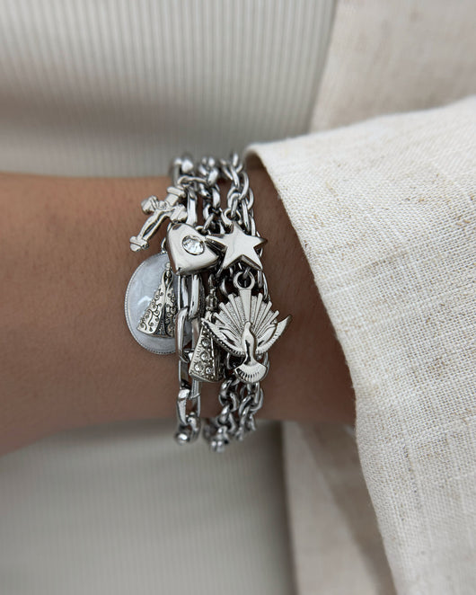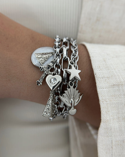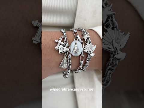 - Pulseira com 3 pingentes, cruz, coração e Aparecida