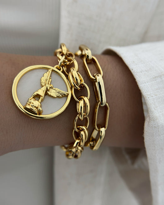 Pulseira de Elos trabalhada com Pingente de São Miguel Arcanjo
