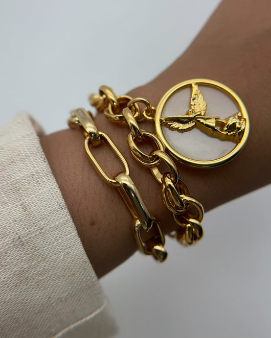 O Mix São Miguel é composto por duas pulseiras douradas que podem ser usadas de três formas diferentes: juntas para um visual marcante, separadas para um toque delicado ou combinadas com outras peças para um estilo ainda mais pessoal.